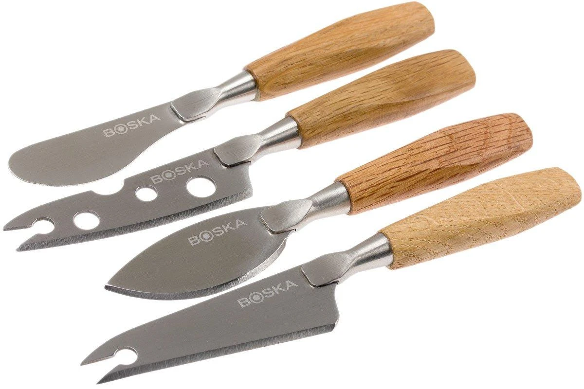 Ce set à fromage mini Chêne de Boska se compose de 4 couteaux à fromage pour couper et présenter vos fromages : un couteau à présenter, un couteau à tartiner, un couteau à parmesan, et un petit couteau cheesy. Un couteau différent pour chaque sorte de fromages. De quoi compléter votre plateau de fromage.