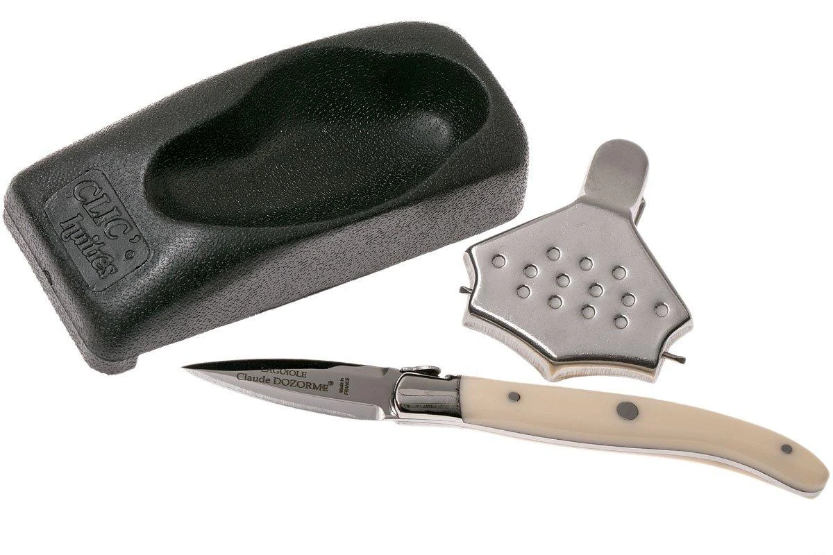 Ce set Ă huĂźtres Claude Dozorme rassemble tout ce qu’il vous faut pour une soirĂ©e huĂźtres rĂ©ussie. Une base bien stable pour maintenir l’huĂźtre en place, un couteau Ă huĂźtre et un presse-citron.