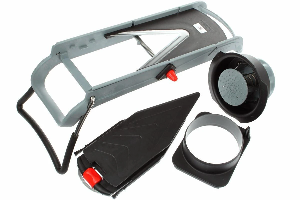 DeBuyer est un fabricant très rĂ©putĂ© de nombreux produits qui sont utilisĂ©s en cuisine professionnelle. Ils recherchent en permanence de nouvelles techniques innovantes. La mandoline Viper n’est pas seulement esthĂ©tique mais Ă©galement rapide et pratique. Vous choisissez l’outil de dĂ©coupe adaptĂ© pour une dĂ©coupe verticale ou en julienne de vos lĂ©gumes ou de vos fruits. Ensuite, vous choisissez l’Ă©paisseur de dĂ©coupe grâce Ă la molette de commande orange sur la poignĂ©e. Le « poussoir » muni d’un protège-main vous permet de guider votre produit sur le rail et la dĂ©coupe peut commencer.