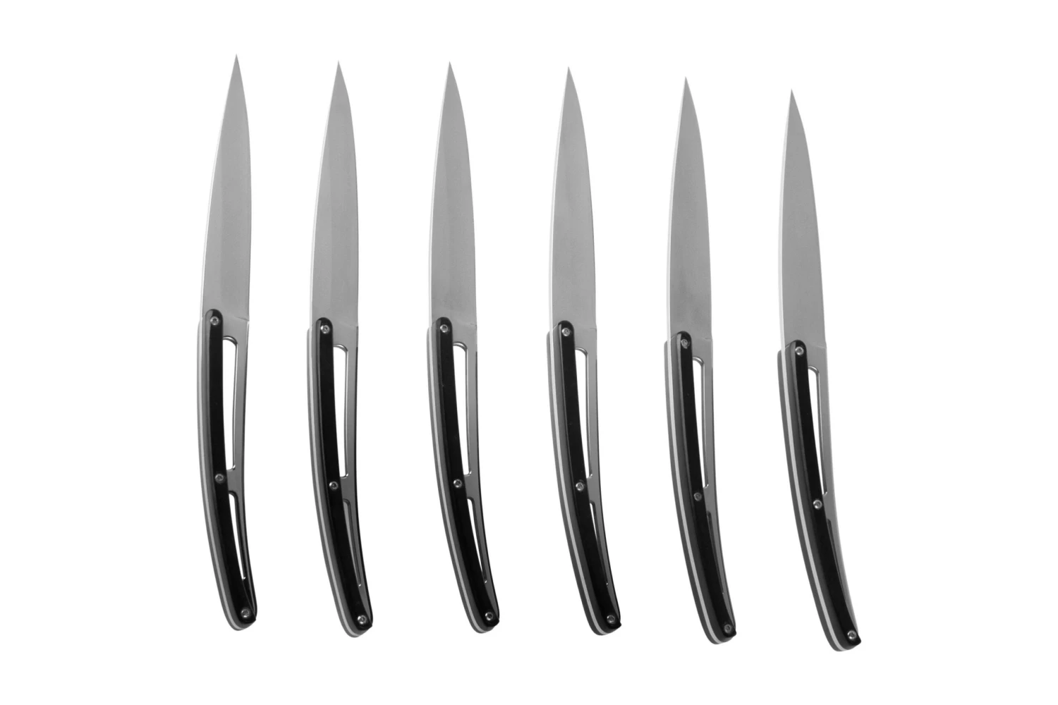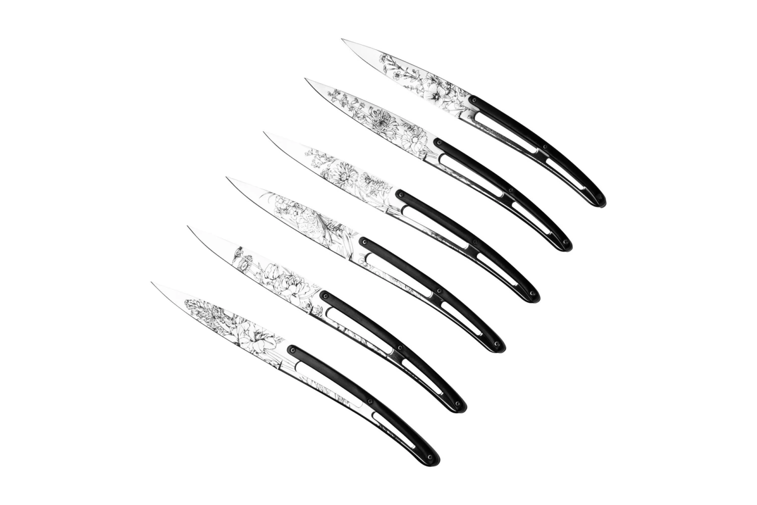 Le set de couteaux à steak Deejo se compose de six couteaux au design unique. Ces couteaux ont un look « nu », c’est-à-dire que le manche n’est que sur le dessus, le dessous faisant partie de la lame. La lame de ces couteaux est gravée avec des motifs floraux uniques. Ils ajouteront une touche d’élégance à votre table à manger.