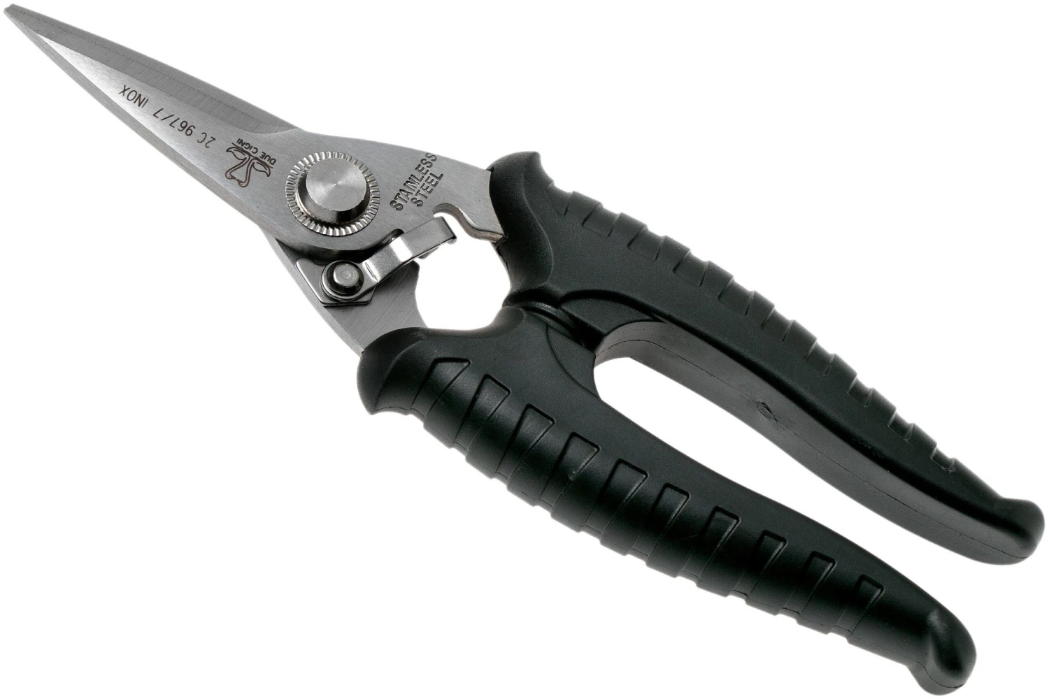 Cette paire de ciseaux de cuisine multifonction Due Cigni est dotĂ©e de microdentelures sur un des cĂ´tĂ©s. Ces ciseaux permettent donc de couper toutes sortes de tissus, mĂŞme les plus Ă©pais, comme le cuir et le denim, par exemple. Les microdentelures permettent de couper bien droit. L’extrĂ©mitĂ© pointue permet de couper du filet en nylon et en mĂ©tal jusqu’Ă 0,5 mm d’Ă©paisseur.