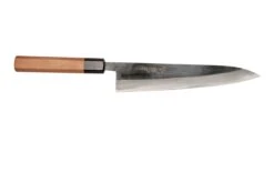 Ce Due Cigni Hakucho gyuto 17,5 cm est un couteau de cuisine de taille moyenne conçu pour couper finement la viande et les gros lĂ©gumes. Gyuto signifie d’ailleurs « épĂ©e Ă bĆuf ». Pour couper les lĂ©gumes, on manipule ce couteau en utilisant la partie de la lame la plus proche du talon. La pointe est utile pour les coupes plus prĂ©cises. Pour couper de (gros) morceaux de viande, il suffit de passer la lame une seule fois.