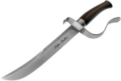 Ce sable à champagne Due Cigni est un véritable eye catcher. A table ou accroché au mur. Le manche de ce sabre à champagne est en magnifique bois d’ébène. Beau et chic. La lame est en acier Sandvik 12C27. Cet acier conserve bien son tranchant et est facile à aiguiser. Il est également résistant à la corrosion et peut être mis à rude épreuve. Ce sabre est livré avec un étui en cuir de couleur cognac clair.