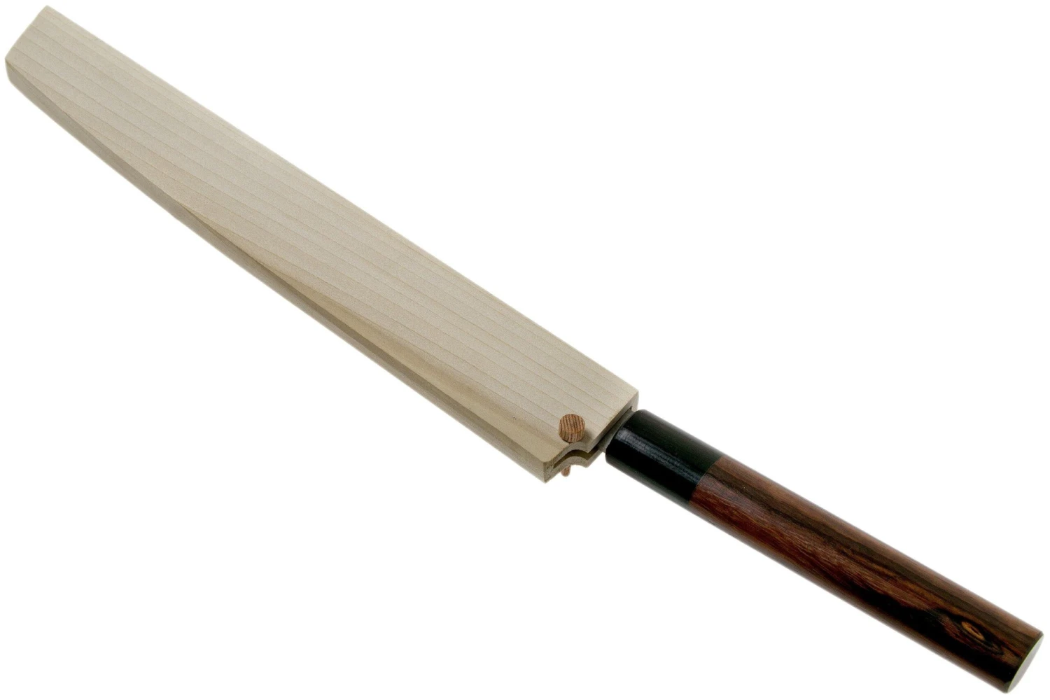 L’Eden Takobiki Ryoba 27 cm est une impressionnante Ă©pĂ©e de samouraĂŻ pour votre cuisine. Avec une longueur de lame de 27 cm, tranchez les plus fins sashimis d’un mouvement souple !