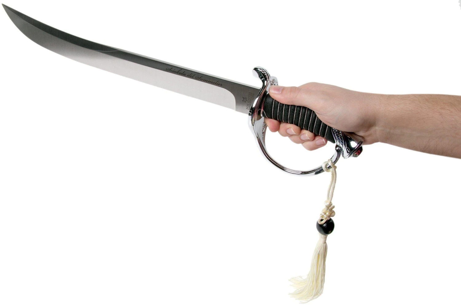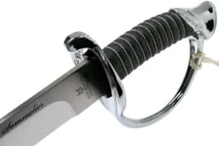 Comme toujours avec cette marque, ce sabre Ă champagne Fox de haute qualitĂ© est fabriquĂ© Ă la main en Italie dans les ateliers de Maniago. Ce sabre respire le luxe. Le manche est dĂ©corĂ© avec un motif unique, les finitions en nickel sont magnifiques, tout comme la garde. Le manche est recouvert de cuir noir et pourvu dâune dragonne blanche. La lame est en acier inoxydable T5MoV. Ce sabre est livrĂ© dans un coffret de rangement luxueux en bois avec un socle noir, Ă©galement en bois. Il permet de prĂ©senter ostensiblement le sabre dans son coffret. A table ou accrochĂ© au mur, câest une vĂ©ritable Ćuvre dâart. Cet ensemble complet est un cadeau parfait pour tous les amateurs de champagne.