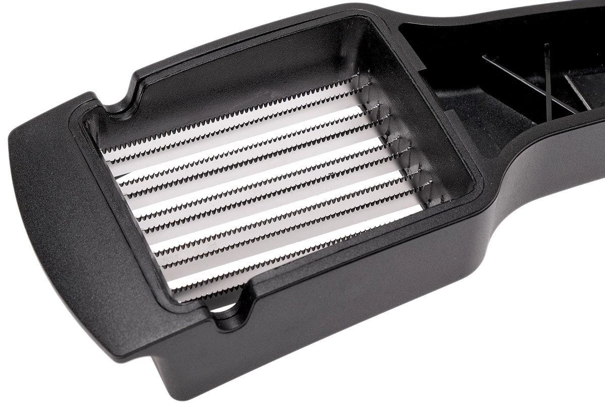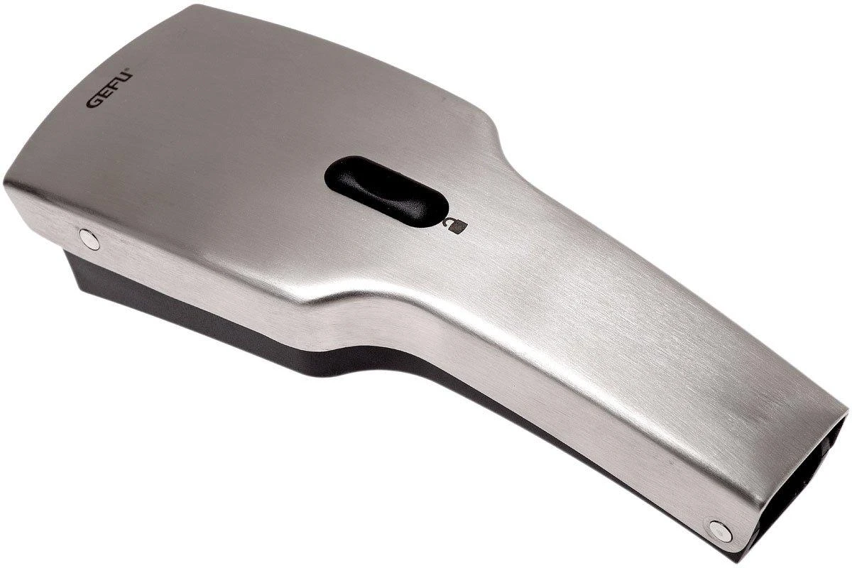 Avec le GEFU Tari, couper les ingrĂ©dients devient un jeu d’enfant. RĂ©alisez des tranches parfaites de 5 mm. Rapidement et en toute sĂ©curitĂ©. Il convient pour tous les lĂ©gumes et fruits tendres, tels que les fraises et les raisins, les kiwis mais aussi pour les Ĺ“ufs et la mozzarella. Il ne convient pas aux pommes de terre crues, ni aux oignons, carottes et autres ingrĂ©dients durs. Les lames japonaises dentelĂ©es sont tranchantes, solides et inoxydables. Autre avantage : ce trancheur se range de façon compacte et sĂ»re grâce Ă un système de verrouillage pratique. Il suffit de dĂ©plier la lame pour la nettoyer. Que ce soit Ă la main ou au lave-vaisselle.