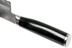 Le santoku Kai Shun Tim Mälzer est conçu pour trancher et couper la viande, le poisson et les légumes. La forme rectangulaire permet de couper les ingrédients avec un mouvement à bascule tout en étant très précis.