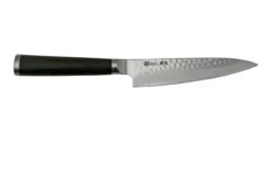 Le petty Mujun Misuzu est un petit couteau de cuisine japonais Ă©lĂ©gant. Petty signifie petit en japonais, et il s’agit de la version japonaise du cĂ©lĂšbre couteau d’office. Ce type de couteau de cuisine convient pour les petites tĂąches de coupe. Comme l’Ă©pluchage d’un fruit, ou pour les petites coupes prĂ©cises pour lesquelles un gros couteau ne convient pas.