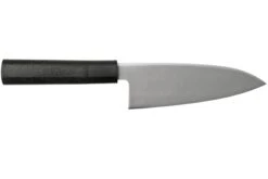 Le deba 12 cm Mujun S55-J est un petit couteau de cuisine japonais assez lourd. Le deba est, Ă l’origine, conçu pour rĂ©aliser des filets de viande et de poisson. La lame est plus Ă©paisse pour pouvoir appliquer plus de force, pour couper de petits os, des arĂȘtes ou des tendons, sans abimer la lame. Ce couteau n’est aiguisĂ© que d’un cĂŽtĂ©, l’autre cĂŽtĂ© ayant une Ă©mouture creuse. Cela Ă©vite que la viande ou le poisson y reste collĂ© pendant la coupe. De par leur aiguisage unilatĂ©ral, les couteaux deba ne conviennent que pour les droitiers. Si vous ĂȘtes gaucher, il existe aussi des modĂšles deba dont la lame est aiguisĂ©e des deux cĂŽtĂ©s.
