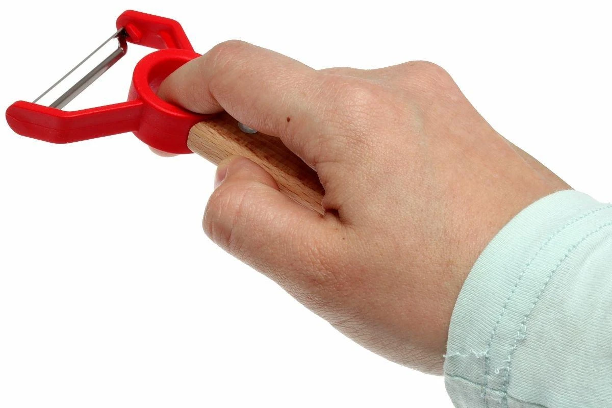 Opinel a lancĂ© sur le marchĂ© « Le petit chef », une ligne spĂ©cialement dĂ©veloppĂ©e pour les enfants. Avec l’Ă©plucheur de cette ligne, les enfants peuvent participer en toute sĂ©curitĂ© aux tâches culinaires. Ce design avec un anneau permet de placer spontanĂ©ment ses doigts au bon endroit pour peler facilement. La lame est Ă©videmment aiguisĂ©e, une surveillance reste donc nĂ©cessaire.