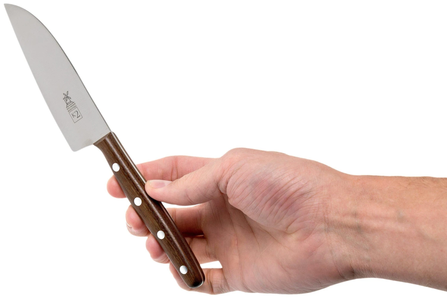 Le petit couteau de chef Robert Herder K5 a une lame de seulement 11,5 cm. Pour ne pas perdre de surface de coupe, la lame est aiguisĂ©e sur toute la longueur. On utilise un couteau de chef pour couper les lĂ©gumes, la viande, le poisson et les fruits. Mais aussi pour hacher les herbes, Ă©craser les grains de poivre et Ă©plucher les gousses d’ail. Le couteau de chef est vraiment polyvalent.