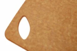 Les planches à découper de Sage sont faits d’une combinaison de bois certifié FSC, de pulpe et de résine. Il en résulte une planche à découper mince avec une surface lisse, non poreuse, résistante à la chaleur et surtout hygiénique. Grâce à cela, elles rencontrent la norme HACCP qui règle les questions de sécurité alimentaire. Elles peuvent donc servir dans un environnement professionnel. Le matériau est assez mou pour ne pas de compromettre le tranchant du couteau, mais assez dur pour éviter les rayures profondes. Selon Sage, ces planches durent minimums 2 fois plus longtemps qu’ une planche de bois. En outre, elles sont relativement légères et elles ne changent guère la hauteur du plan de travail.