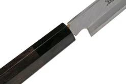 Le yanagiba Sakai Takayuki Blue 2 Steel Japanese Style 01203 est un couteau de cuisine aiguisĂ© d’un seul cĂŽtĂ©, qui permet de couper des tranches de viande, de poisson ou de lĂ©gumes. La lame de 24 cm permet d’effectuer de longs mouvements de coupe. De quoi prĂ©parer des tranches ultra fines de viande, poisson ou lĂ©gumes. C’est idĂ©al pour les sushis ou les sashimis !