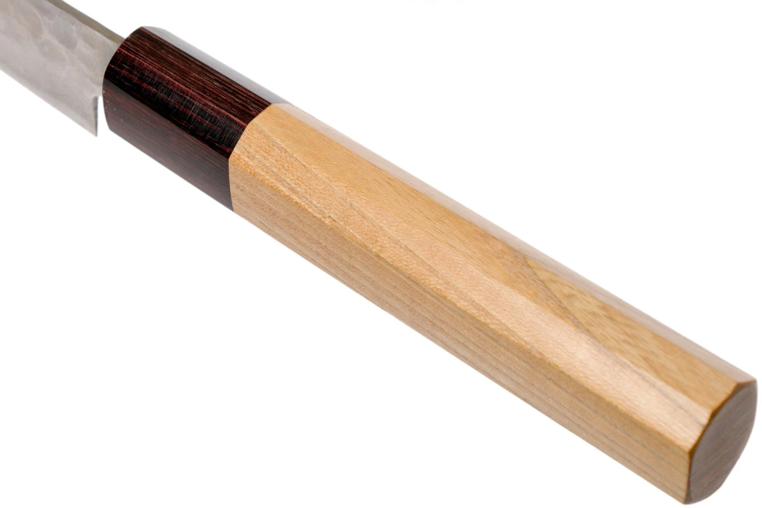 Ce couteau universel Sakai Takayuki 15 cm de la gamme 33-layer VG10 Damascus Hammered WA est l’homme Ă tout faire des couteaux de cuisine. Vous pouvez l’utiliser pour hacher finement les herbes, couper les lĂ©gumes ou mĂȘme la viande.