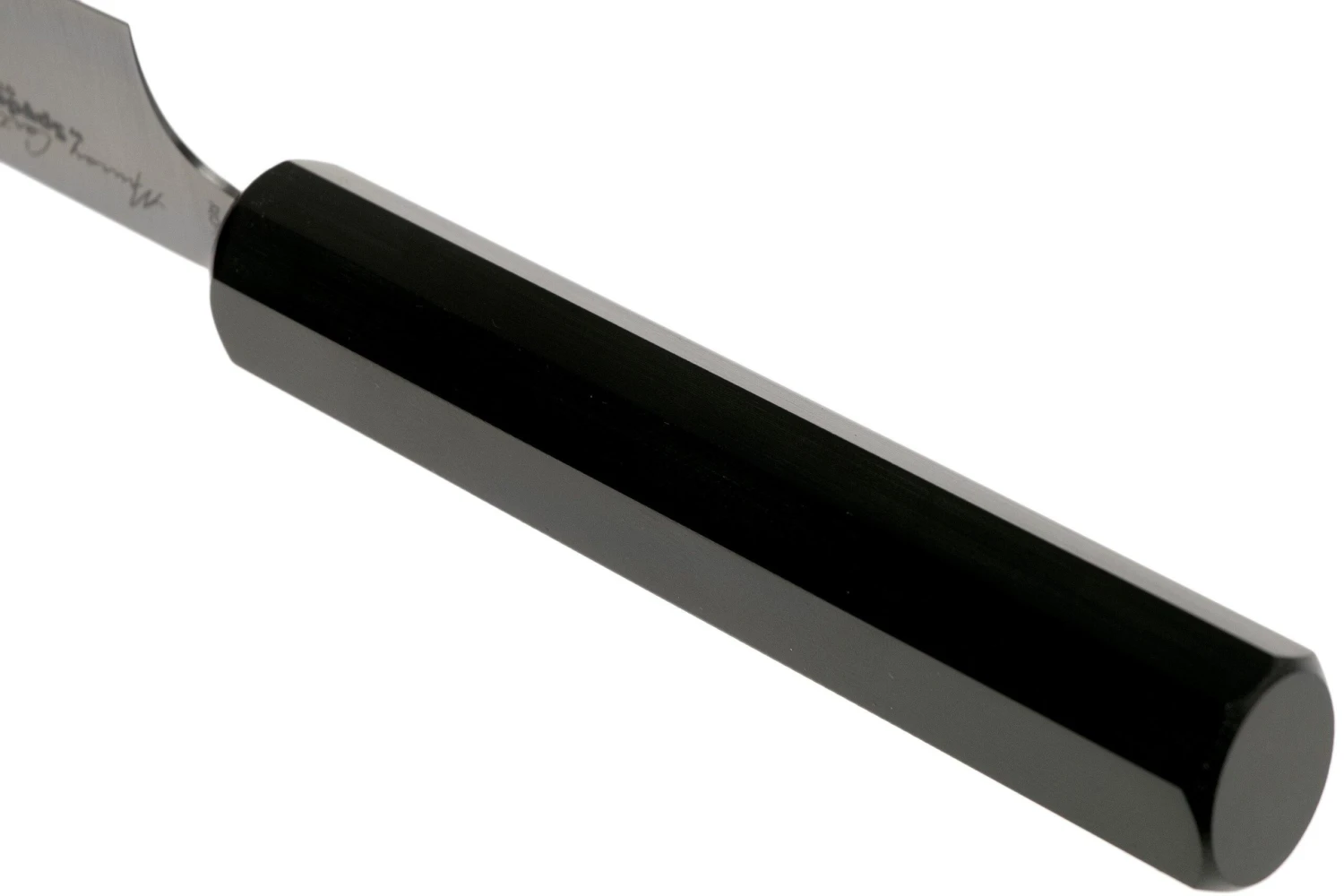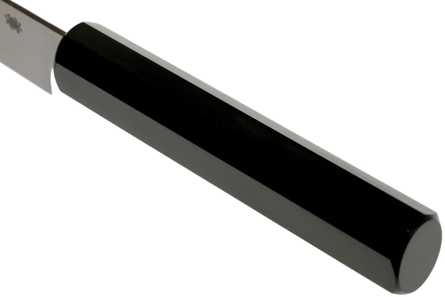 Le Spyderco Wakiita Petty de la collection Murray Carter est le plus petit couteau de cuisine de cette gamme. Le Petty est donc un petit couteau que l’on pourrait comparer aux couteaux Ă Ă©plucher occidentaux. Parfait pour Ă©plucher et couper les fruits et lĂ©gume ou encore couper de la garniture pour dĂ©corer les plats.