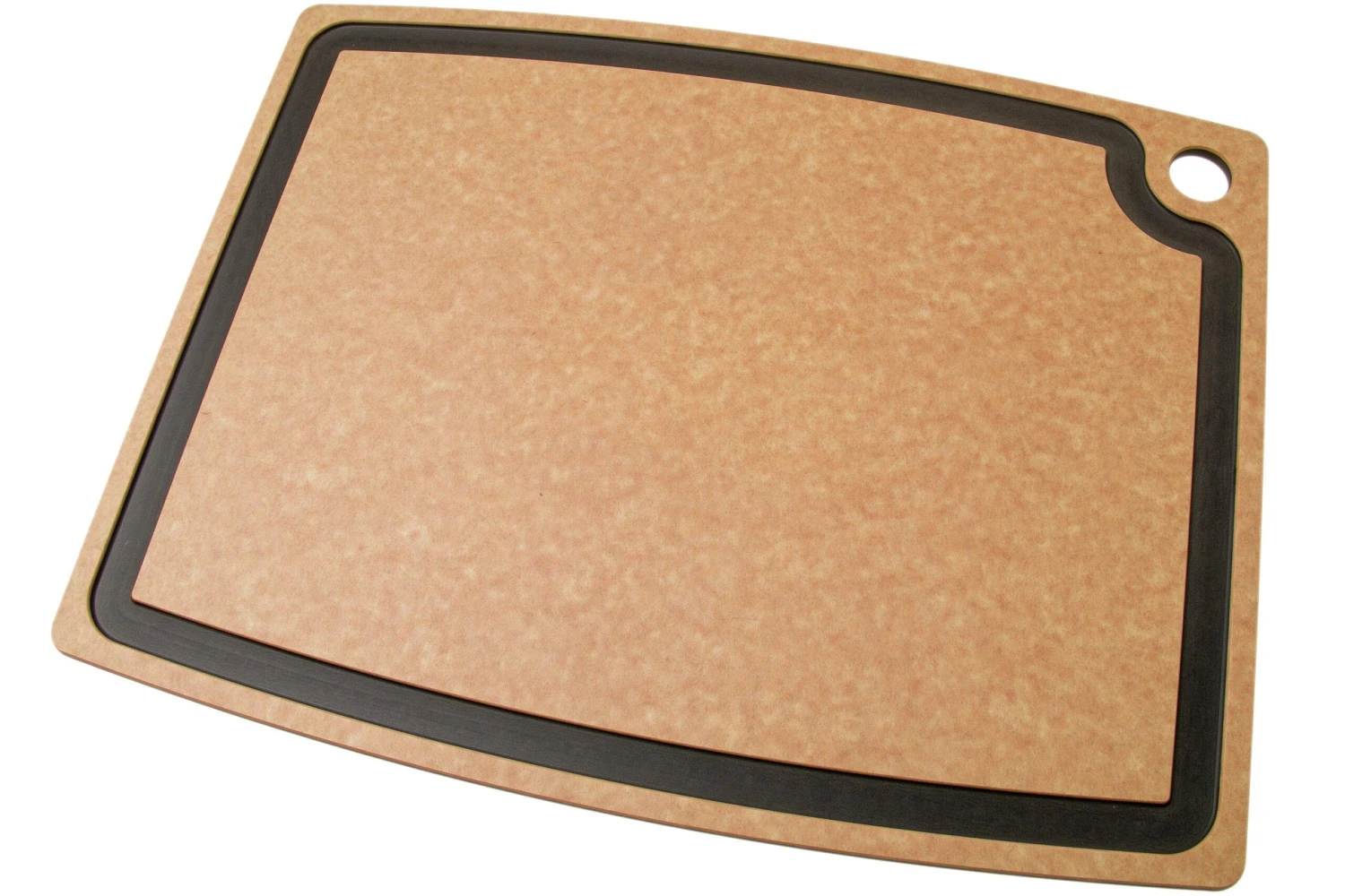 Cette planche à découper fine et robuste Victorinox Gourmet fait 49,5 centimètres de long et 38 centimètres de large. La planche est fine et chic. La planche à découper est en fibres de bois. Un matériau respectueux de l’environnement. La planche est incroyablement durable et peut supporter jusqu’à 175 degrés Celsius. Elle peut donc aller au lave-vaisselle ! La planche brune arbore une « tranchée » noire qui va recueillir les miettes et l’humidité, par exemple. Ainsi, votre plan de travail reste propre et sec.