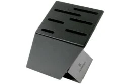 Rangez jusqu’à 6 couteaux dans ce bloc à couteaux Victorinox Swiss Modern 7-7086-03. Son design stylé en cuir noir donnera du charme à votre plan de travail. Ses pieds en RVS contrastent joliment et font bien ressortir ce bloc à couteaux, même sur un plan de travail sombre.