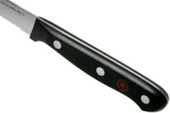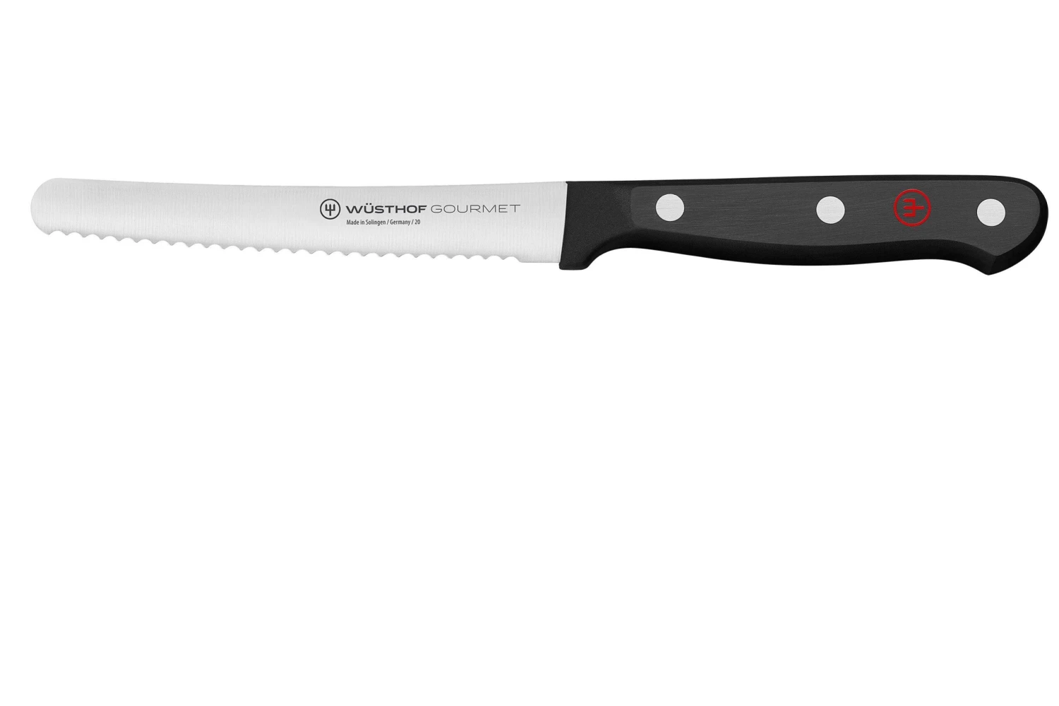 Ce couteau à tomates Wüsthof Gourmet 12 cm est le compagnon idéal pour préparer un panier-repas ou un brunch. Avec les fines dents de sa lame, ce couteau coupe non seulement parfaitement le pain sans le déchirer, mais il convient également pour trancher les légumes (comme les tomates fermes), et le saucisson. Cela en fait un couteau parfait pour les pique-niques et brunchs.